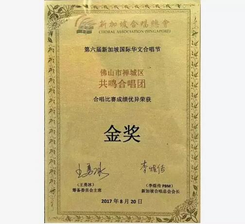 建星人,建星梦,携手唱响佛山好声音!8月20日,2017年新加坡第六届国际华文合唱节落幕,建星合唱团荣获金奖。