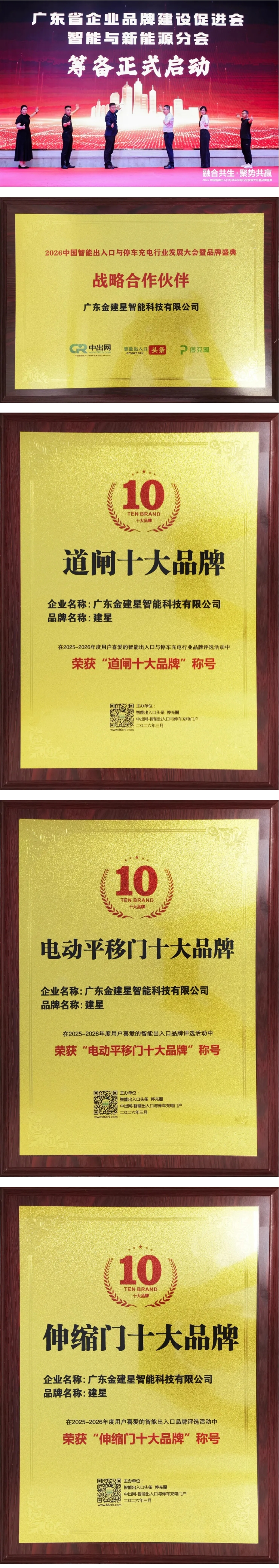 热烈祝贺【建星智能】连续多年荣获出入口行业十大品牌荣誉!