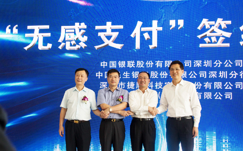 会上,捷顺科技与银联、民生银行、深圳机场签定“银联无感支付”合作协议,宣布“银联无感支付”在深圳机场的停车场正式上线,并同时宣布深圳市关爱办牵头成立了深圳市第一支关爱交通辅警基金。