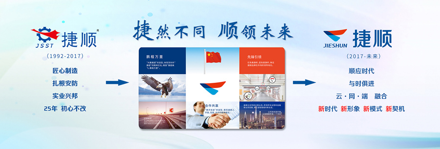 新logo继承了原来的主色调和飞翔含义,但图形更显现代化和年青化。新logo外形如飘扬的旗帜,象征标杆地位;同时又像双手紧握,体现开放、包容、共赢的经营理念,JSST改为“JIESHUN”,更容易理解,整个Logo呈现扁平化的简约设计。