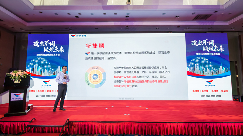 10月12日,正值 2017首届国际物业产业博览会展期的第二天,捷顺科技在深圳召开了“捷然不同,顺领未来”品牌升级发布会。发布会上亮相的不仅仅是捷顺新升级的logo,同时捷顺还向市场传达了全新的业务战略。
