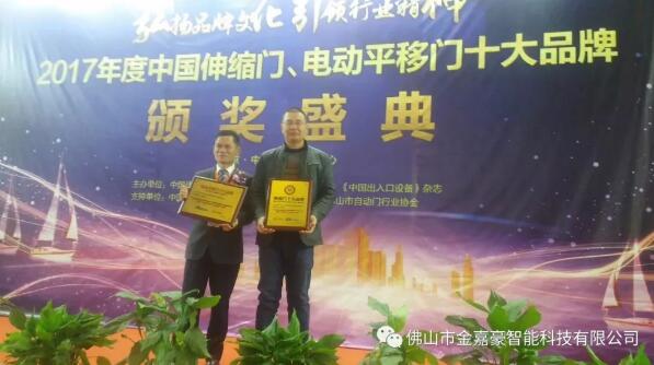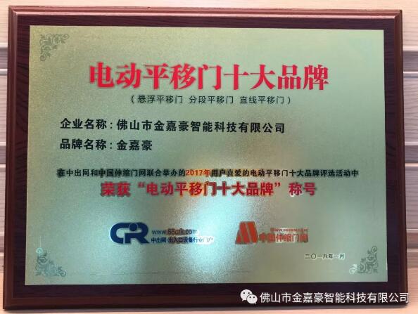 金嘉豪荣获电动平移门十大品牌