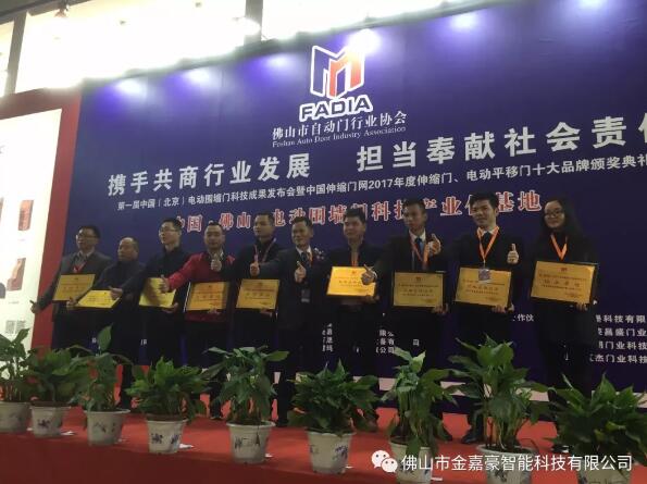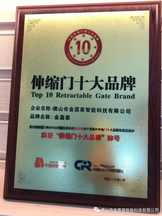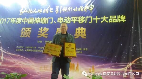 金嘉豪连续6年获得中国伸缩门十大品牌