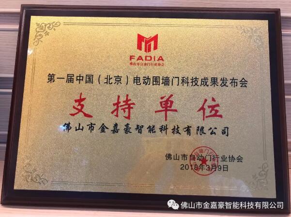 同日,北京国际展览中心万头攒动,由佛山市自动门行业协会主办,中国建筑金属结构协会自动门电动门分会和中国伸缩门网、中出网协办的第一届中国(北京)电动围墙门科技成果发布会暨中国伸缩门网2017年度伸缩门电动平移门十大品牌颁奖典礼在这里隆重举行。