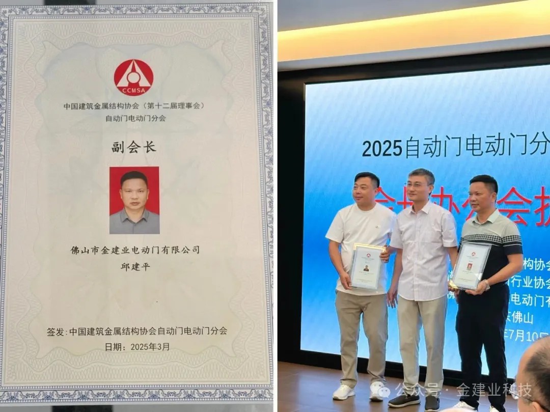 会议由中国建筑金属结构协会自动门电动门分会主办,佛山市自动门行业协会协办,金建业全程承办。来自行业协会的领导、会长单位代表及企业齐聚一堂,围绕户外门业技术创新、市场拓展、标准建设等核心议题深入交流。金建业董事长邱建平,新任中建金协自动门电动门协会副会长 ,与行业“大佬”们并肩研讨,以开放共享的姿态,为户外门业发展注入新动能。