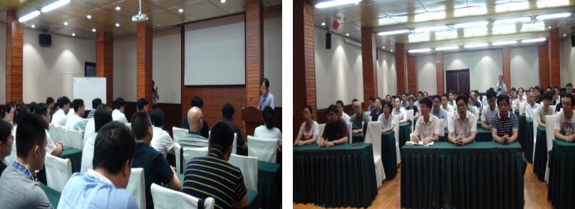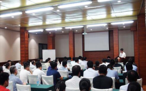 上图,江苏国强集团党委副书记袁剑锋为公司全体党员上党课。