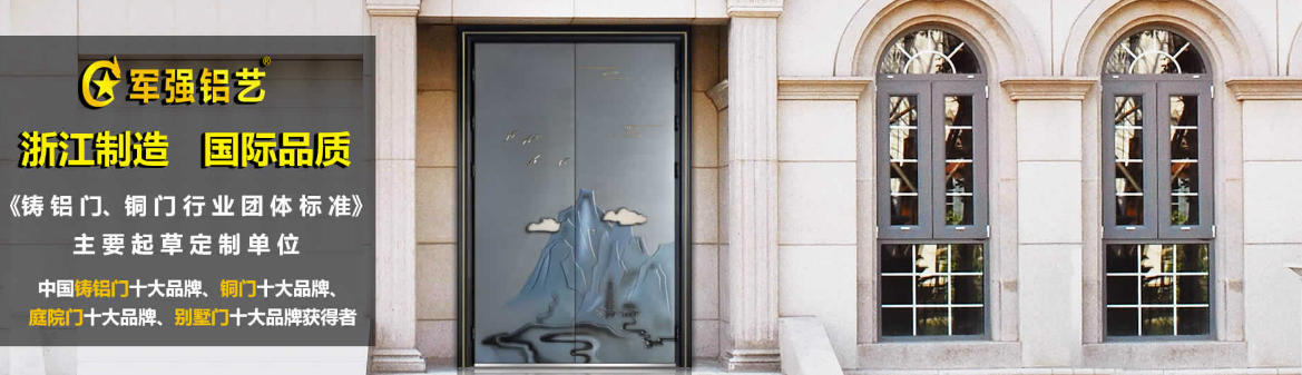武义军强铝业有限公司成立于1997年,是一家集设计、研发、销售、服务融为一体的门类企业。经过近数年的发展,公司发展为铜艺、铝艺、城市小非标、农村非标别墅大门四大系列产品的大型门业企业。公司拥有四大事业部,“军强”主要为公司制造铸铝门、庭院门、铝围栏扶手、铝卡等铝制产品;“金黄制造”主要为公司制造铜门,不锈钢铜门,铜车库门,铜屏风及铜装鉓制品;“普斯帝”主要为公司生产城市小非标门和标准防盗门;“德普曼”主要为公司生产锌合金农村非标大门。在2020年军强门业以技术突破,结构创新成为了行业中唯一一家金属门类产品齐全的标杆企业,奠定了军强公司的实力!