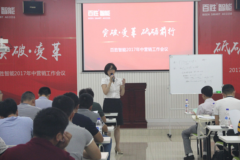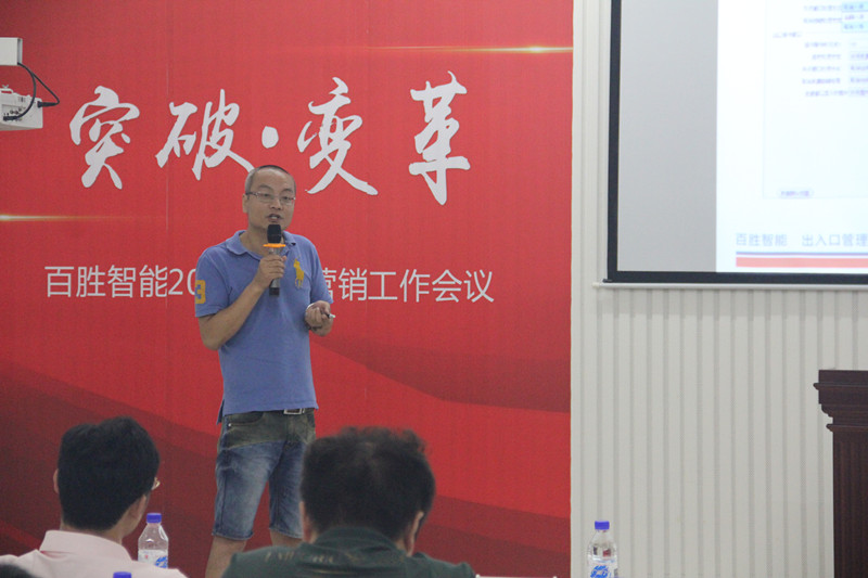 百胜智能营销副总监谢小斌对上半年的营销工作进行了总结。在市场同质化、低价竞争的压力下,公司上半年销售业绩同比显著增长,36V直流无刷开门机、车牌识别道闸一体机等新产品表现亮眼;以合肥、太原、武汉为代表的十几个办事处,半年度业绩增长突出。