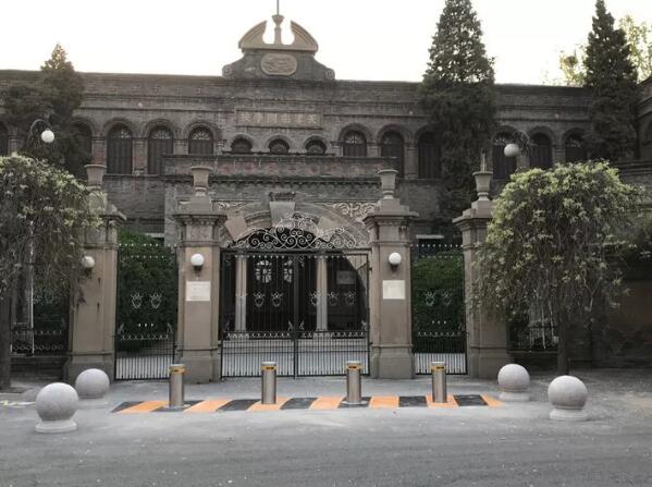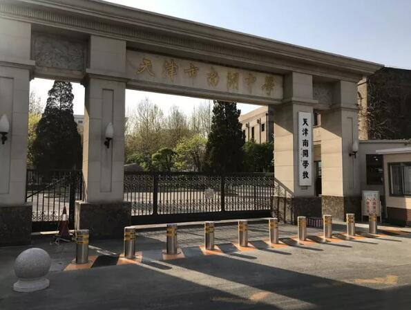 南开中学所有的校园出入口都配备升降地柱守护,有效防范车辆冲撞事故的发生。