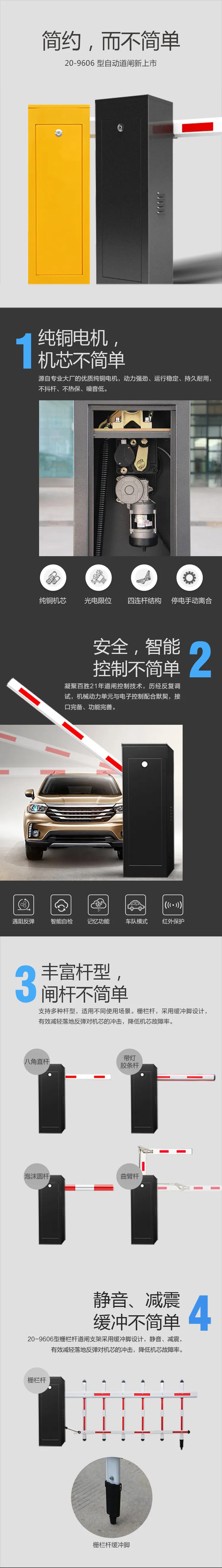 20-9606型道闸是一款主打性价比的爆款产品,设计简约、外形低调,符合大众审美;