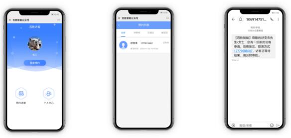 访客可直接在公众号上登记信息、申请预约,经由管理员线上审批后,后台自动发送短信提醒及时审批,通过后访客实现扫码进入。
