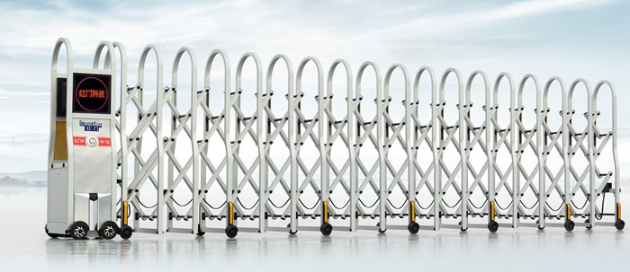 伸缩门就是门体可以伸缩自由移动,来控制门洞大小、来控制行人或车辆的拦截和放行的一种门。伸缩门主要由门体、驱动电机,滑道、控制系统构成。门体采用优质不锈钢及铝合金专用型材制作,采用平行四边形原理铰接,伸缩灵活行程大。驱动器采用特种电机驱动,蜗杆蜗轮减速,并设有自动离合或手动离合器,自动离合停电时可自动启闭,手动离合停电时可手动启闭,控制系统有控制板,按钮开关,另可根据需求配备无线遥控装置。