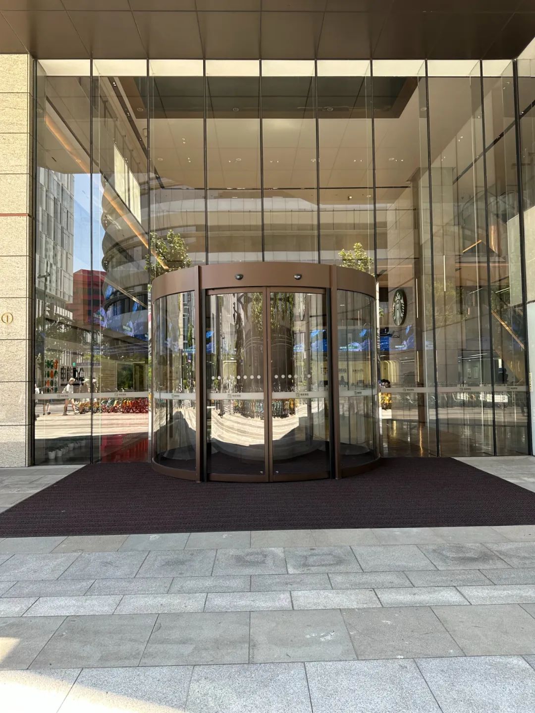 这次上海申能财险公司的大门,相比传统的入口,多了一个不一样的地方,在入口的中间,有一个大大的柱子,很大程度上影响了门区的安装和运行,无法安装传统的自动门或者旋转门,在方案前期,PAD®工作人员多次实地考察以及和客户的沟通,最终经过技术部多次的和客户沟通和确定。采用了围柱+弧形自动门的解决方案。