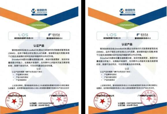 为了响应国家信息技术应用技术创新的号召,佳都科技参股公司广州睿帆科技有限公司与统信软件技术有限公司共同完成了关于睿帆科技自主研发核心数据库产品雪球数据库系统V2.0与统信服务器操作系统V20、统信桌面操作系统V20的产品兼容性认证。