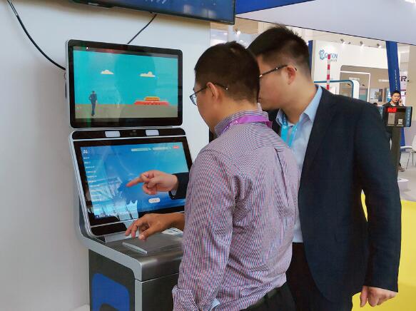 门口的道闸门禁配合钱林智能人脸识别访客机,给客户带来无接触式的进出体验,吸引了很多目光;而钱林精美新型的商务自助访客机的操作演示也让观展者流连忘返,当然还有各种自主服务终端,比如景区/影院自助售取票机、酒店自助入住机等也用其十分便利快捷的操作方式给客户留下很深的印象。