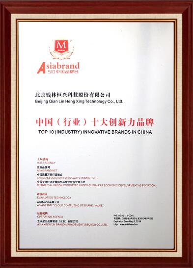 钱林恒兴荣获“中国(行业)十大创新力品牌”证书