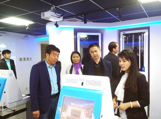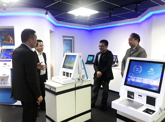在钱林张董事长的陪同下,领导们分别参观了产品展示厅和办公区域。在产品展厅中,钱林员工热情细致地向领导们讲解了,智能自助终端在行业的重要意义以及各产品的功能特点,并亲身体验了智能访客机、自助售取票机、入住机、点餐机等不同产品,不仅感受到产品的强大功能,也体验到科技为人类生活所带来的便捷。