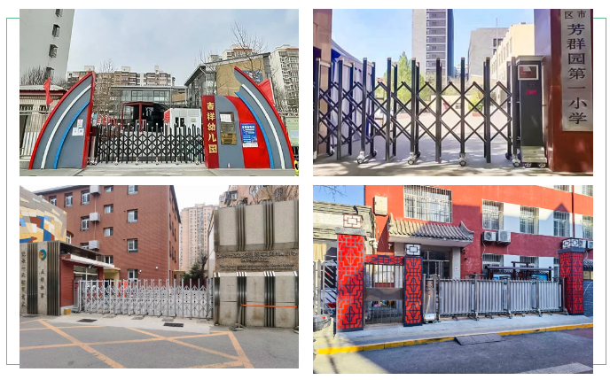 学校中常见的伸缩门款式多样,有简约实用的不锈钢款式,也有时尚美观的铝合金款式。不锈钢伸缩门款式较为传统,以其坚固耐用、价格实惠受到青睐;铝合金伸缩门则因其多样的造型和可定制的颜色,更具现代感和个性化。