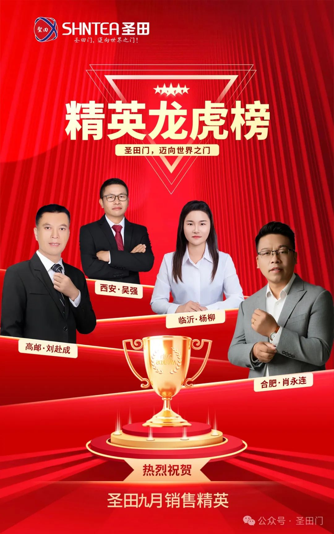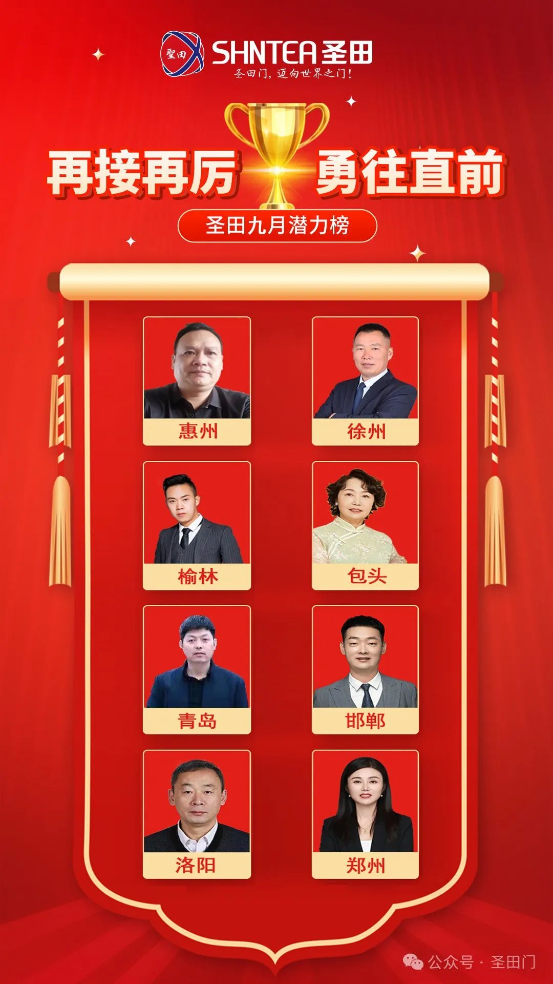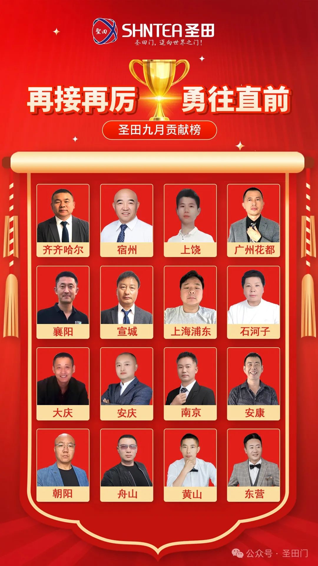 八月的辉煌尚未远去,九月便已烽火再燃!且看那销售精英阵营,合肥肖永连、高邮刘赴成、临沂杨柳、西安吴强,他们就是战场上的无敌猛将,在九月的商业鏖战中,披荆斩棘,光芒万丈!他们以钢铁般的意志、猎豹般的敏锐、战神般的勇猛,疯狂开拓市场疆域,为圣田智能铸就不朽的业绩丰碑!他们是圣田智能的传奇英雄,激励着每一个圣田人热血沸腾,奋勇冲锋!