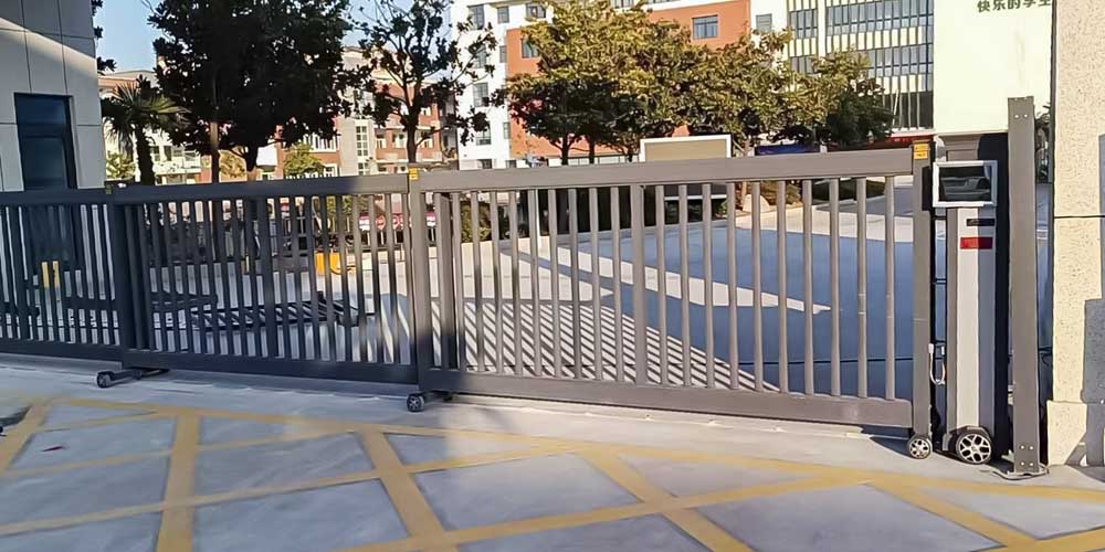 针对新建校门口,圣田智能推荐整体出入口解决方案。若场地开阔,悬臂门是理想之选,其无轨道设计不占用地面空间,开启平稳静音,适合师生密集的校园环境,搭配智能控制系统可实现远程操控与定时开关。若场地呈狭长型,直线段滑门更适配,运行轨迹精准,密封性能佳,能有效阻挡外界干扰,同时支持人脸识别、刷卡等多种通行方式,满足师生快速进出需求。