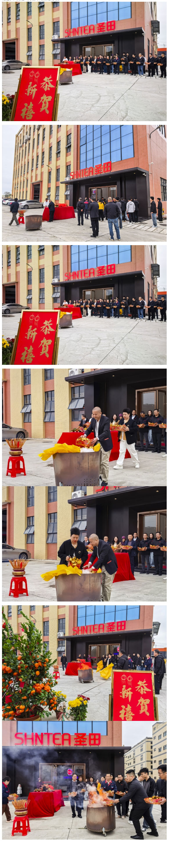 拜神仪式依礼进行,全程庄重有序。首先恭请天官降临,众人手持清香躬身祭拜,祈愿天官赐福、福运绵长,护佑圣田智能新一年紫气东来、万事顺遂,业务版图节节攀升。随后,众人转向土地神祭拜,感念土地神庇佑一方水土,祈求园区基业稳固、风调雨顺,为企业发展筑牢根基,也护佑全体员工出入平安、工作顺遂。祭拜过程中,焚化金银纸钱酬谢神明,礼炮声响彻园区,既呼应了传统礼俗,又传递出对新年的热切期盼。