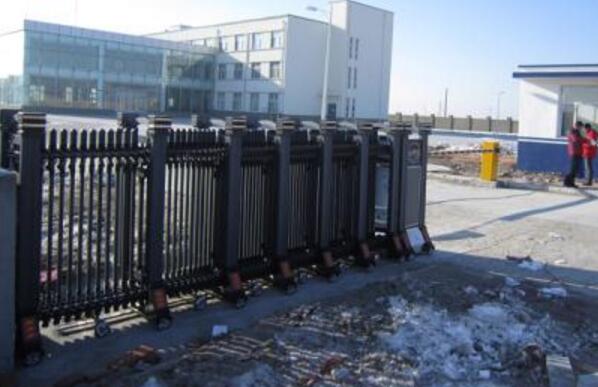 3、伸缩门技术指标:1)门体伸开后,每个节距≤410mm;2)导线布置应合理,导线中间不允许有接头;3)机头有警示标志,用反光膜制作;4)机头上的电机装置必须有防雨装置;5)外露面不应有明显划伤、污渍,凸凹不平的缺陷;6)门体完全伸开后,门立框的晃动量应≤20mm;7)门体缩合后,相邻门立框的上下间距差应≤10mm;8)门体缩合后,相邻立框的高低相关:组装框应≤10mm,弯曲框应≤10mm;9)门体缩合后,各铰接杆不齐偏差应≤5mm;10)遥控器:距离应≥30m;b、抗电强度:1500V?50Hz/1min应不击穿;c、无闪络,门体尾部应设置接地装置。
