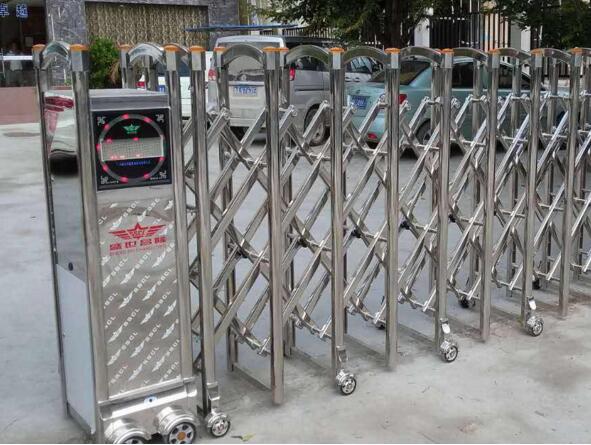 绍兴电动伸缩门门体采用优质不锈钢及铝合金专用型材制作,采用平行四边形原理铰接,伸缩灵活行程大,给宝业云溪里项目不一样的体验。