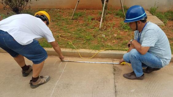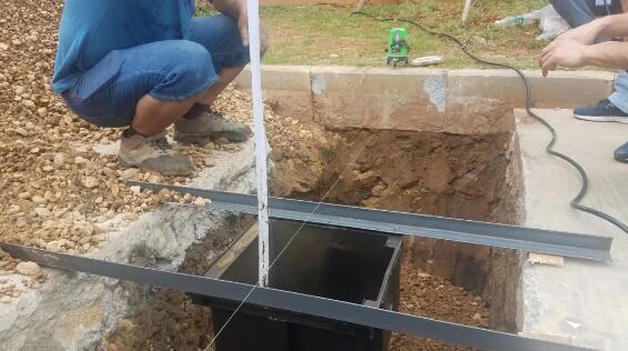 使用水平仪、水平线,确保地基盒中心对齐、与地面水平对齐。