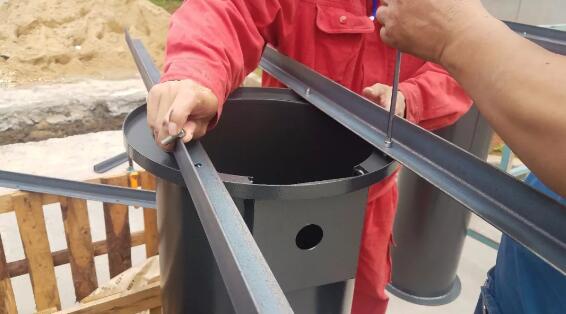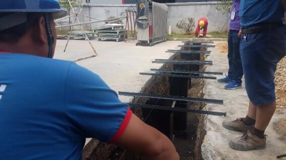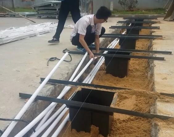 角钢固定地基盒,地基盒放入预埋位置,间隔1.2米-1.5米(根据客户要求)。