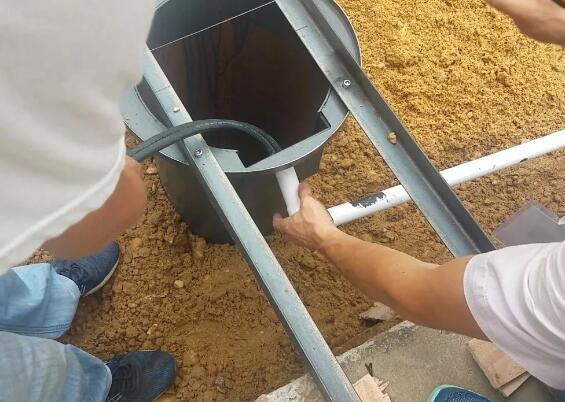 注意:回填砂石时将预埋桶上口遮拦,切忌掉落砂石进去。