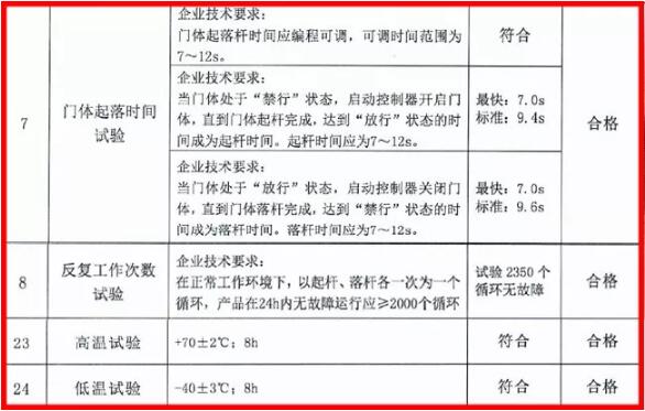 门体起杆时间最快为7s(标准9.6s)、落杆时间为最快为7s(标准9.4s)。