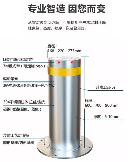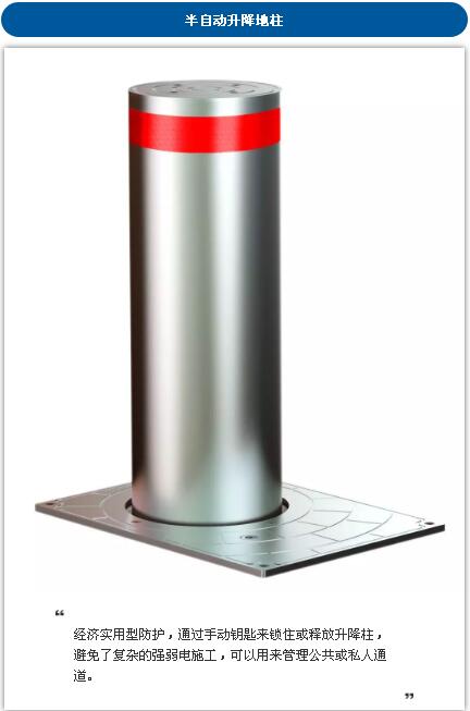 与百胜车牌识别一体机、道闸、人行通道广告门配套使用,提升出入口的整体安全性、智能性。采用车牌识别方式控制升降地柱,实现自动识别、自动升降、快速通行,适用于车辆高频率出入场所。
