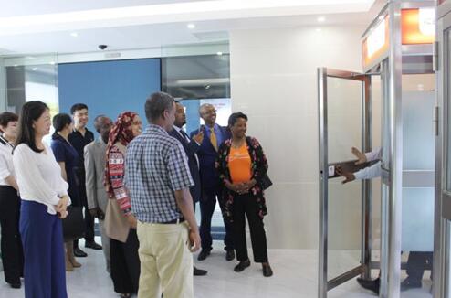 (埃塞一行参观湘联银行门)