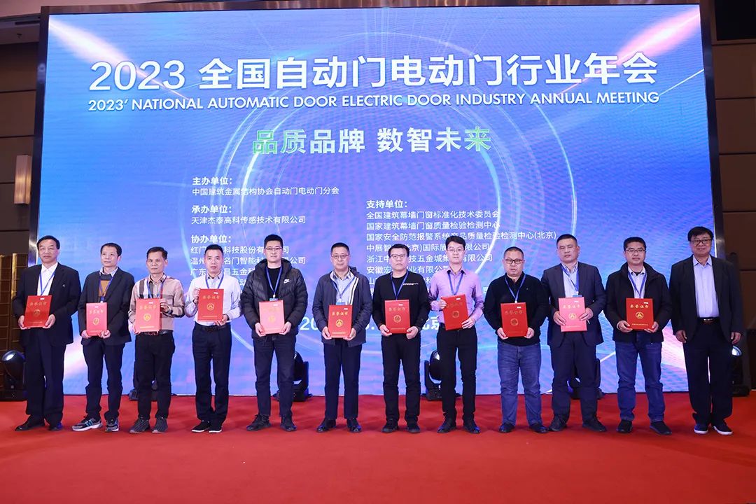 会上,中国建筑金属结构协会自动门电动门分会对2023年度为行业做出贡献的先进企业及优秀个人进行表彰和颁奖。广东英龙智能科技有限公司作为标准编制单位之一,荣获“团体标准《户外人行智能平开门》 参编单位”。