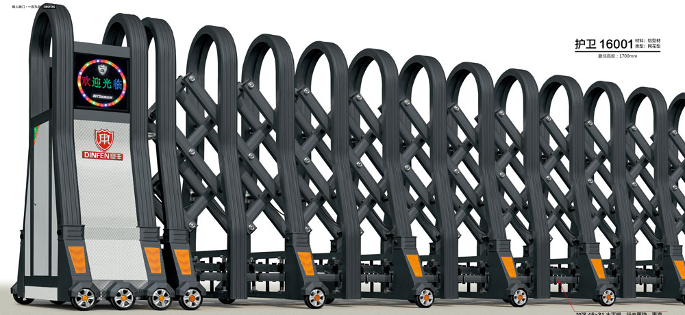 自贡出安电动门门全部采用高铜不锈钢型材,品质优良。隐蔽的布线方式,让整个门体外观更简洁。卧式四维均缩直线技术(专利)完全无规运行,性能更稳定可靠。符合自锁耐磨套连接技术改变了传统的穿孔铰接结构,更牢固,更科学。一体化机芯配置,机头采用工程材料一体式注塑成型,产品精度高,使用寿命长。而且不导电,使带电部分与金属外框绝缘,免除漏电风险。抗风结构装置不但有很强的抗风性能,能确保电动门在强风吹袭下仍能照常运行,其结构能有效减小抗风钩与导轨的摩擦阻力,提升门体的运行效率。智能红外线探头防撞装置在遇人或者车辆30-50cm时可以自动返回运行,从而保障车辆及行人的安全。