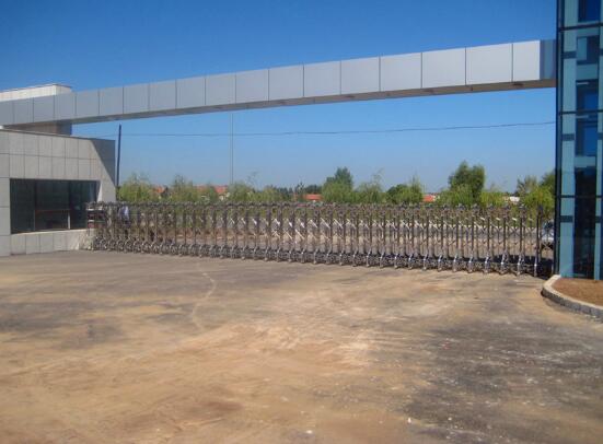 舟山伸缩门门体采用优质不锈钢及铝合金专用型材制作,采用平行四边形原理铰接,伸缩灵活行程大,给中城建第十一工程局有限公司项目不一样的体验。