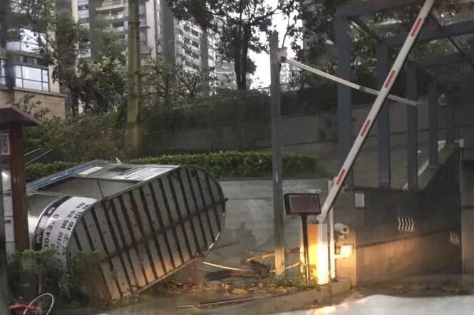 在强大的山竹面前,普通道闸显得异常脆弱,闸杆被折断,机箱扭曲变形。