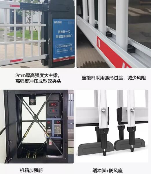 重型道闸门在正常工作环境中,以起,落一个循环计为一次,产品24h内无故障运行不少于2000次。